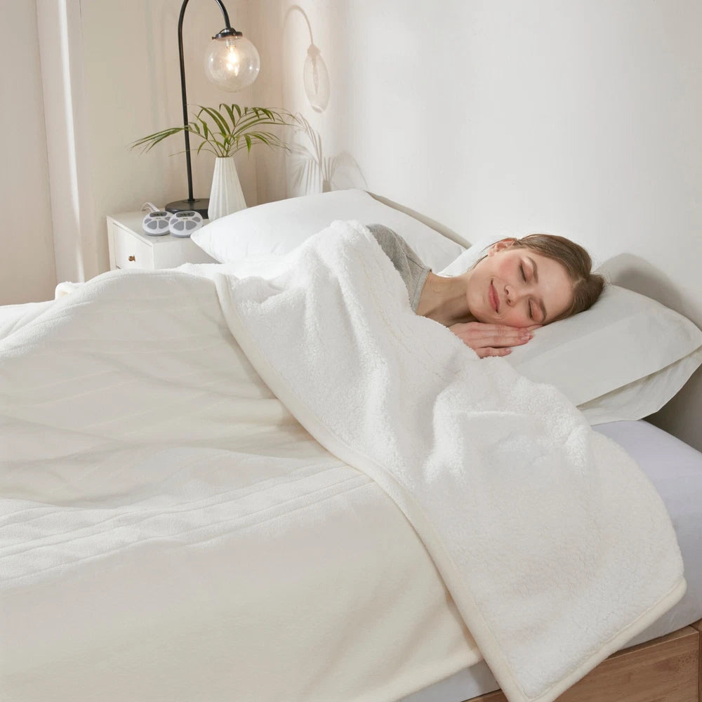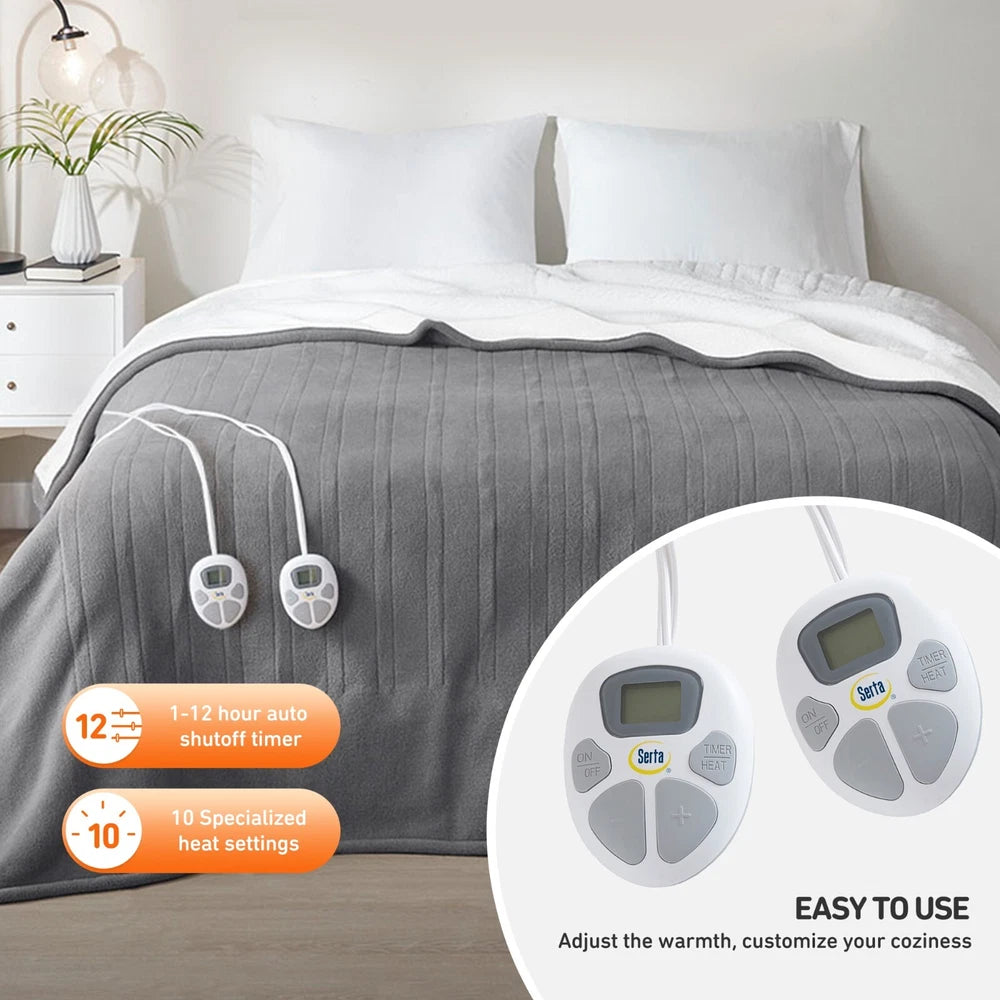 Serta Fleece to Sherpa Heated Blanket. This heated blanket features an ultra-soft fleece face with a cozy Sherpa reverse, for extra comfort. • Ultra soft fleece to cozy sherpa. Includes manufacturer's 5-year warranty.